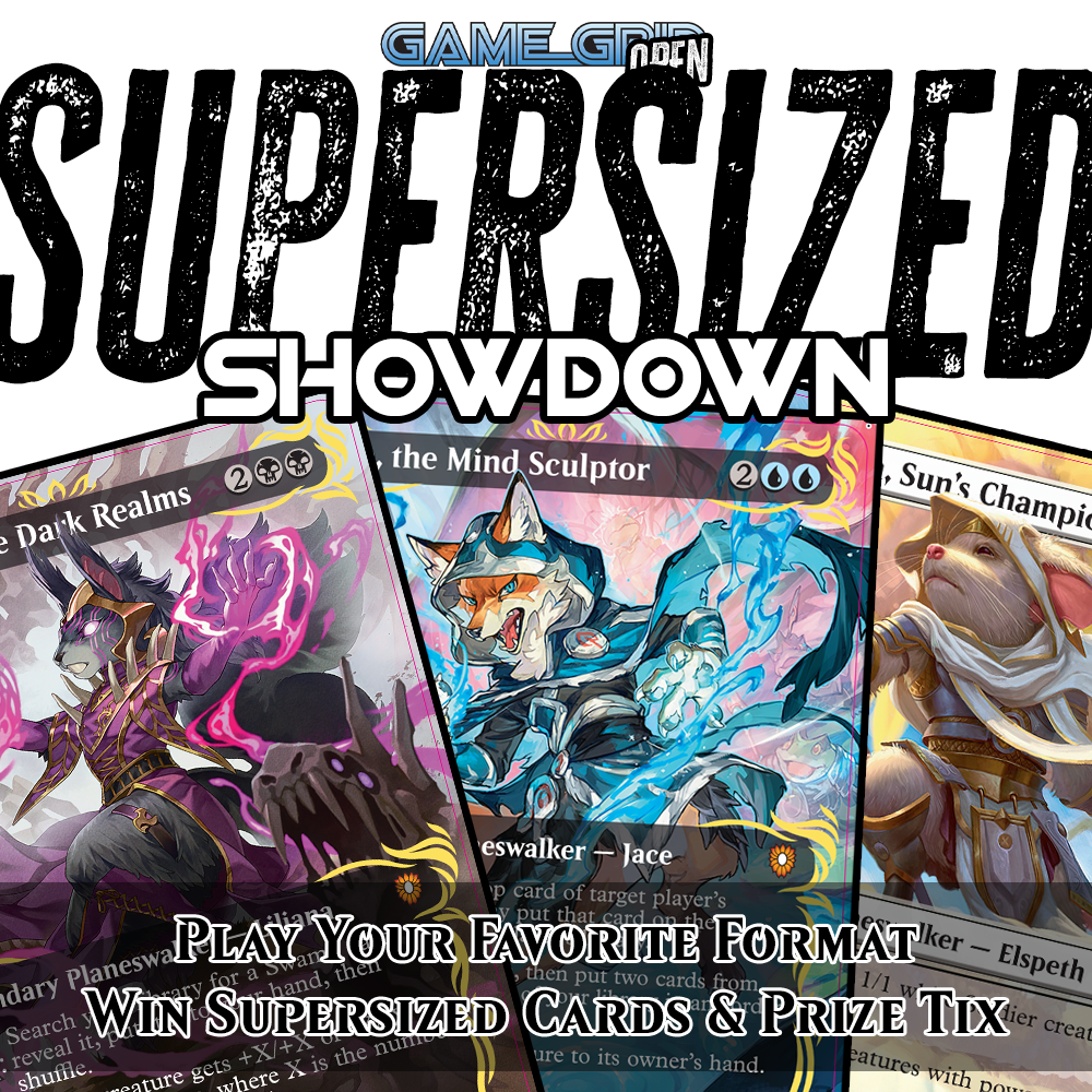 Step into the ring for the Supersized Showdown, a fast-paced, five-round challenge where going undefeated earns you something massive—literally. Take home an exclusive Supersized Card if you win all five rounds, or rack up a pile of prize tix along the way. It’s competitive, it’s rewarding, and it’s one of the most fun ways to test your deck against top-tier talent. Come battle for glory, giant cards, and bragging rights!